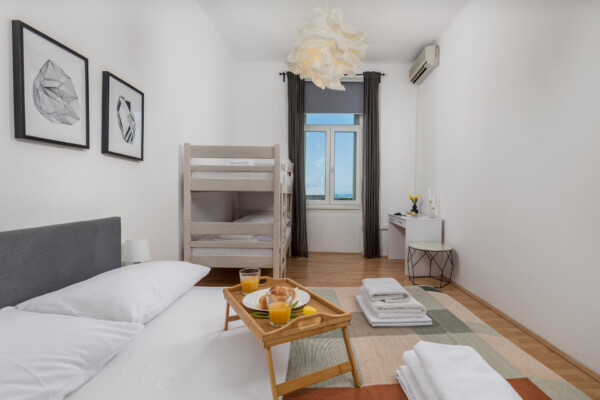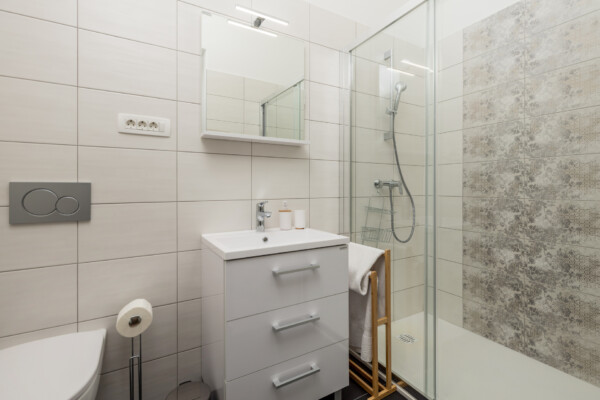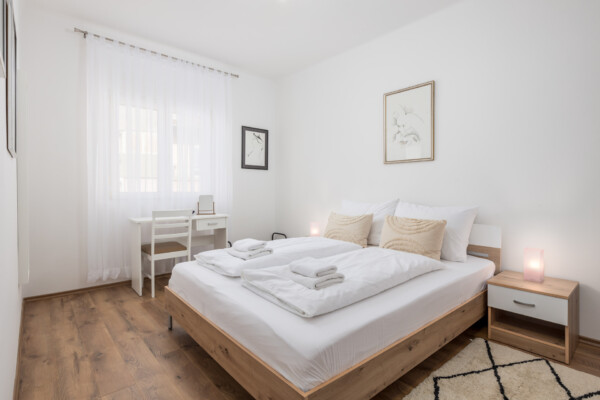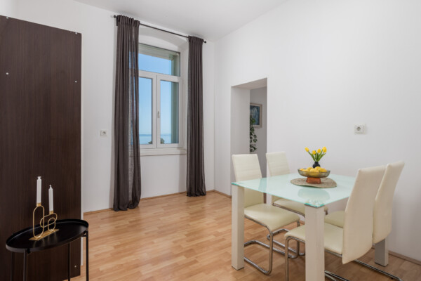 Only when you step into this studio apartment will you truly be able to feel all of its magic. Modern interior design, furnishings, perfect location, details, comfort and warmth – this studio apartment at the heart of Rijeka has it all. Walks, exploring, excursions – when you’re at the centre of the city that flows, everything is at your fingertips. The kitchen is equipped with a stove, refrigerator, microwave, coffee machine, dishwasher, and the studio apartment also has a safe. It is fully air-conditioned and features Wi-Fi. The sofas are placed in front of the cable TV for your maximum comfort. The bathroom is equipped with a hair dryer. The dining table and its chairs, as well as the remaining decoration, blends perfectly with the whole interior. Together with the carefully selected details, they make the studio apartment just as it is – perfect. Book your stay, we are awaiting you.