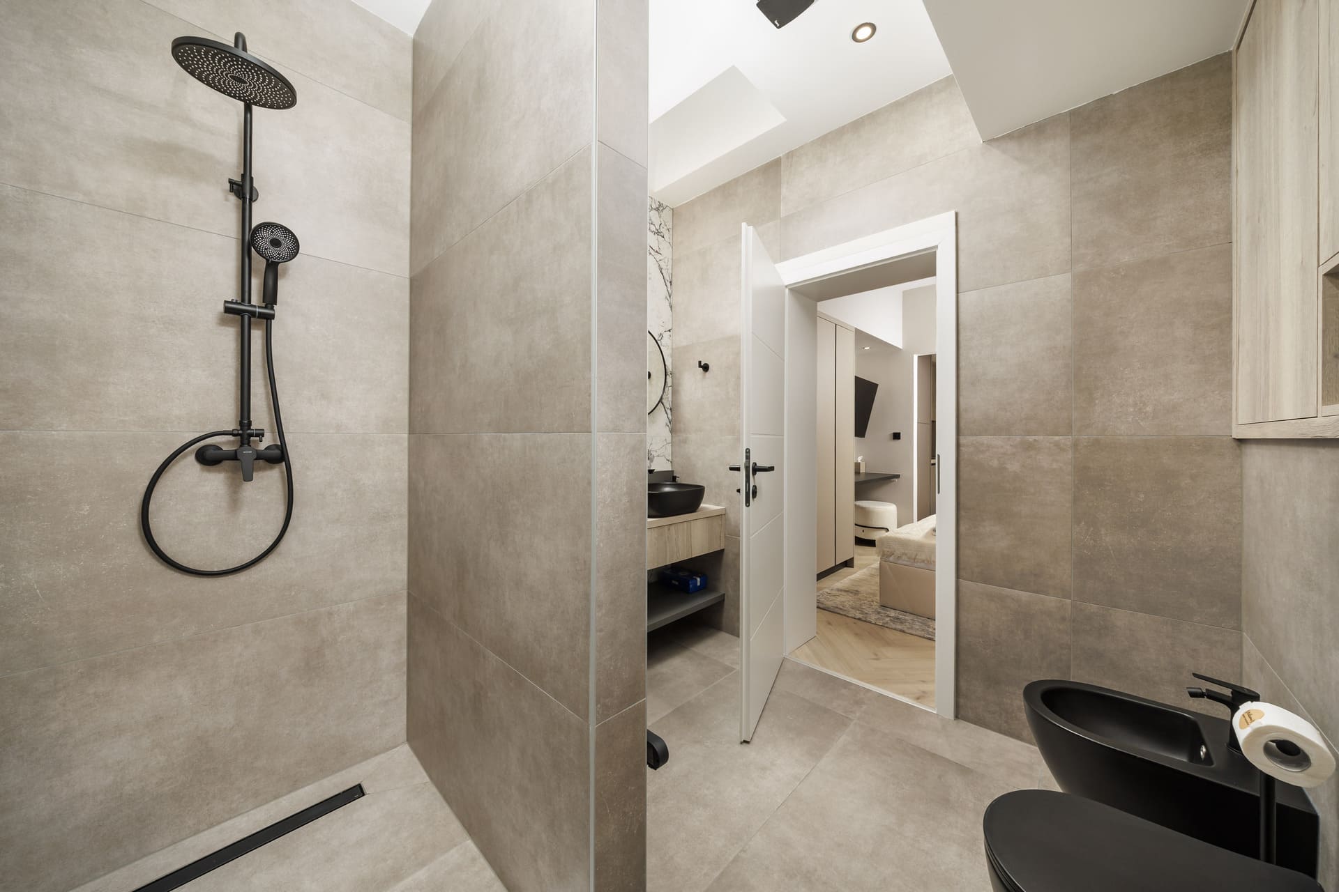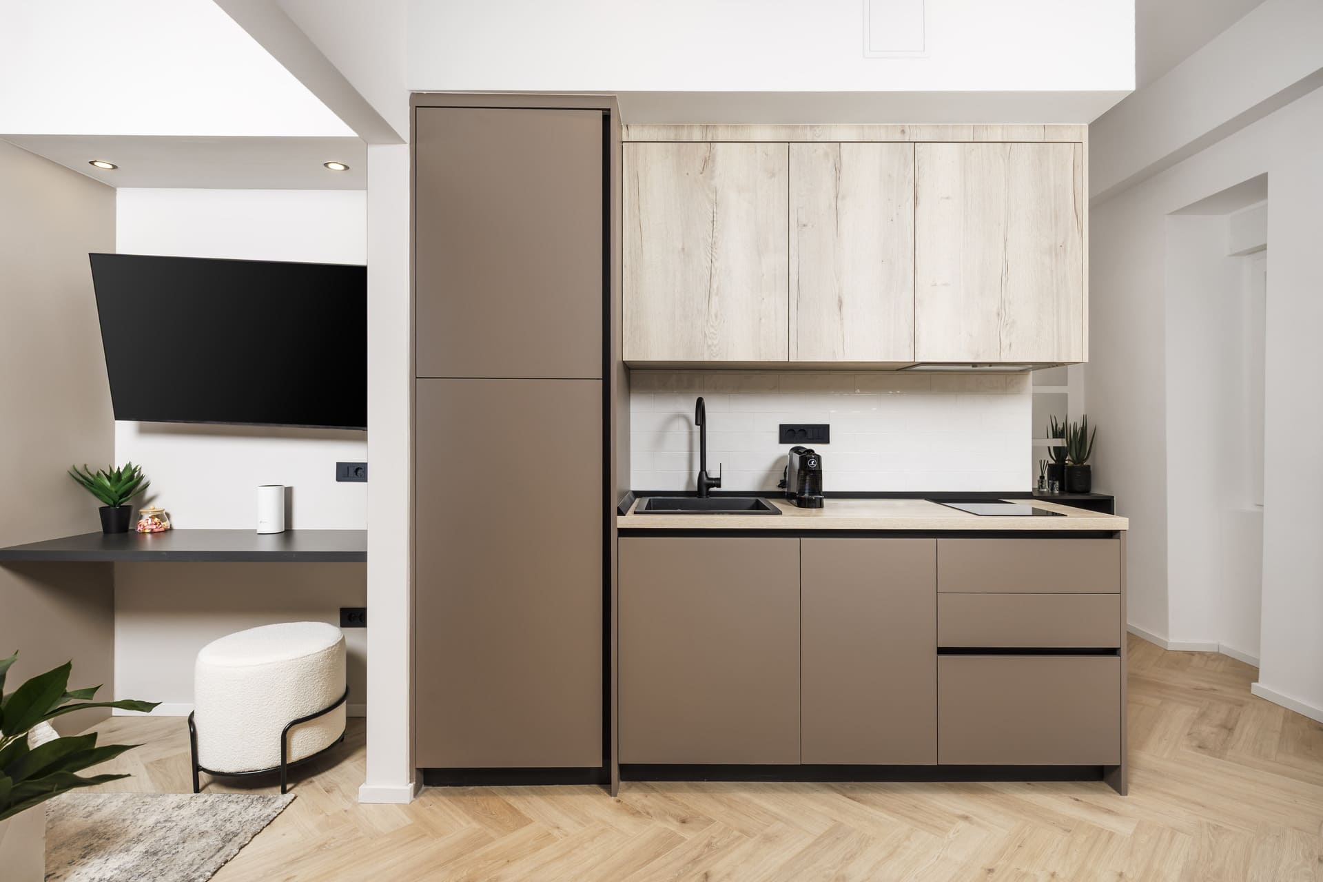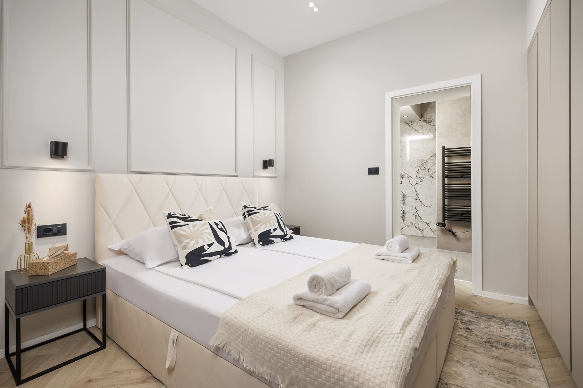L’appartamento offre un confortevole spazio notte con dettagli eleganti, una cucina e un bagno di lusso. Gli ospiti hanno accesso a una lavatrice e asciugatrice condivise, per un soggiorno pratico e senza pensieri.